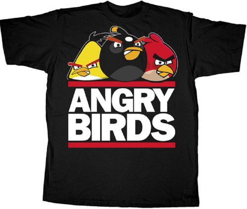 This is an authentic Angry Birds Run Birds Mens T Shirt in black featuring the Angry Birds in a Run DMC Logo design. Made of 100% pre-shrunk cotton. Adult men's sizes. Ladies can wear this tee as well if they don't mind a looser fit.